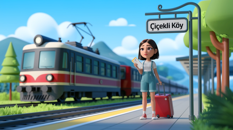 Şimdi, Melis tren istasyonunda. Elinde küçük, kırmızı bir valiz ve bir tren bileti var. Tren yavaş yavaş istasyona geliyor. Melis hâlâ endişeli görünüyor çünkü trende doğru koltuğu nasıl bulacak, bilmiyor. O aynı zamanda mutlu, çünkü teyzesini çok seviyor ve onu görmek için sabırsızlanıyor. O uzun zamandır teyzesini görmedi. Teyzesi, Çiçekli Köy’den üç saat uzaklıkta güzel bir şehirde oturuyor.