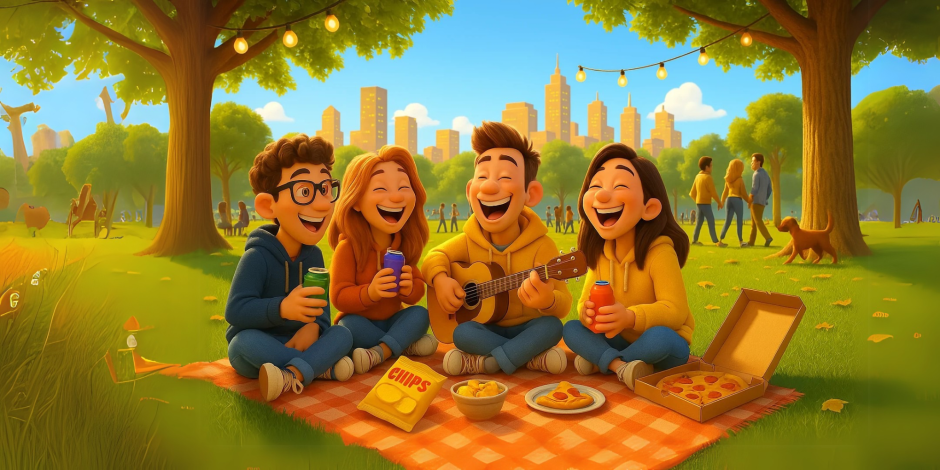 İngilizce: Every Friday evening, I hang out with my friends. - Türkçe: Bugün parka gidip biraz takıldık.