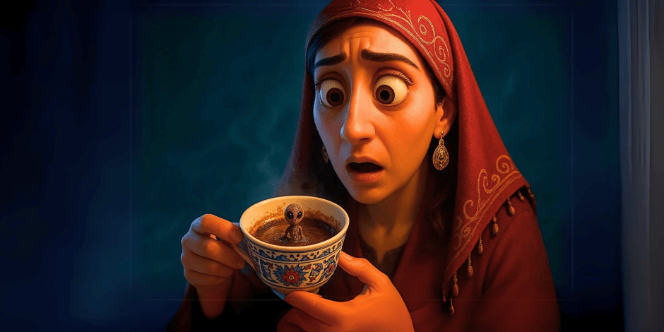 İstanbul’da bir kadın, kahve falında uzay gemisi ve bir uzaylı gördü. “Burnu yoktu ama gözlük takıyordu,” dedi. Falcı kadın “Çok korktum. Bir daha fal filan bakmam! Bu sondu.” diye yorum yaptı.