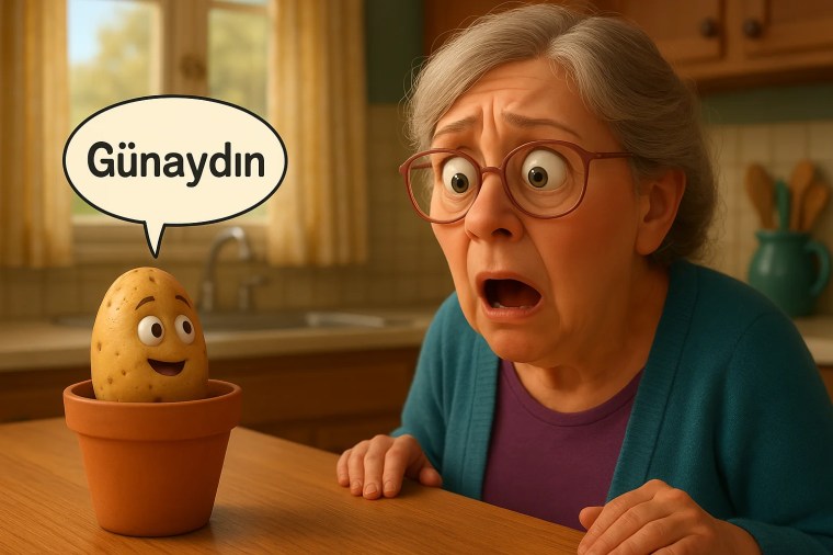 Ankara’da bir ev kadını, Leyla hanım, evindeki saksıda patates yetiştirdi ve geçen hafta patates konuşup “Günaydın” dedi. Leyla Hanım hala kulaklarına inanamıyor ama yetkilileri kayıt almaları için evine davet ediyor.