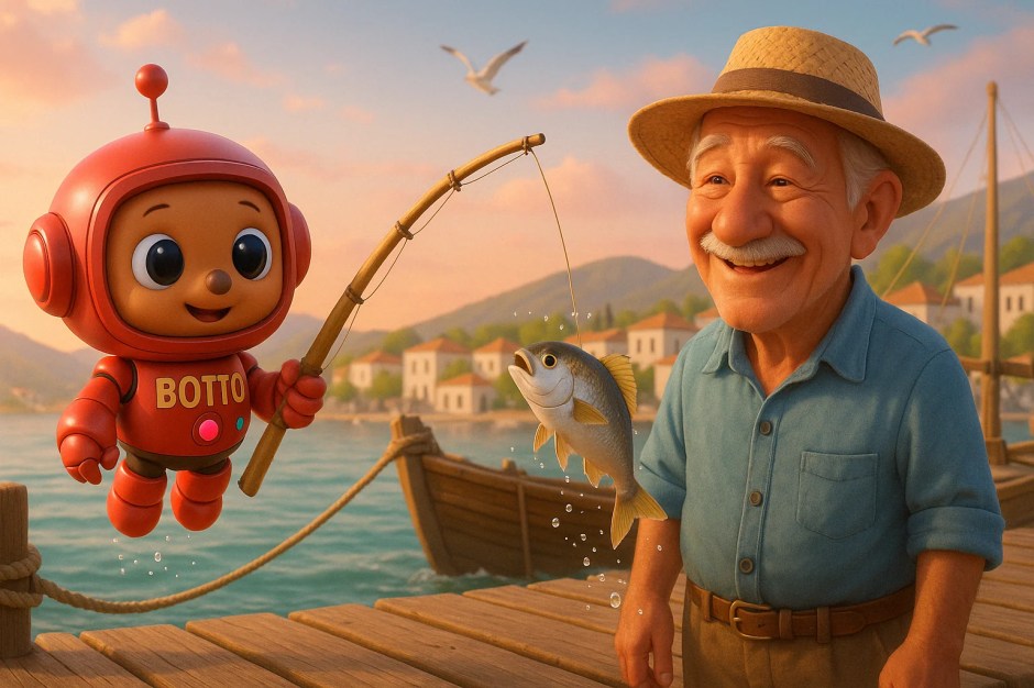 BOTTO ona selam verdi. “Günaydın, beyefendi, bana balık tutmayı öğretebilir misiniz, lütfen?” dedi. Hasan gülümsedi. “Tabii ki,” diye cevapladı. “Önce oltayı hazırlayalım.” Hasan ipi uzattı, iğneye küçük bir ekmek parçası taktı. “Bu yem,” dedi. “Şimdi ‘olta atma’ zamanı.” BOTTO oltayı kaldırdı, dikkatle denize fırlattı. Su yüzeyinde bir daire oluştu.